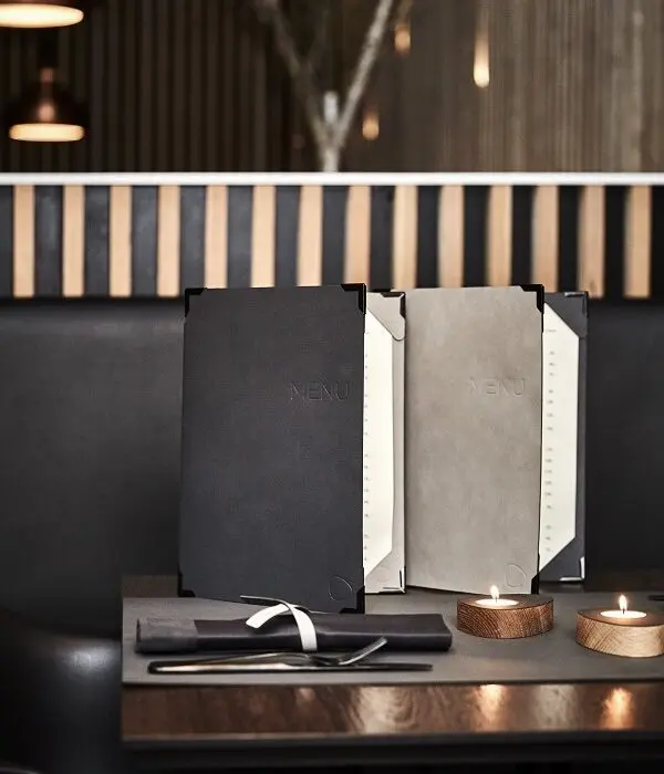 De LIND DNA-rekeninghouders en menukaarten zijn een teken van efficiëntie, zorgvuldigheid en een bewuste keuze. Gemaakt van gerecycled leer, voegen ze een vleugje luxe toe aan de totaalervaring van de gast. Deze producten zijn geschikt voor intensief bezochte gastvrije omgevingen, en bieden een praktische en stijlvolle oplossing om het menu, de rekening of koffie condiment op de kamers te presenteren. Maak indruk op gasten en vraag onze account managers om advies.